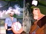 Wild Bill hits a foul off of Roadblock’s softball pitch and the ball