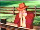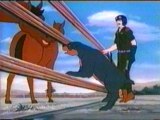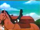 just getting the knack for riding but then the horses tosses him off. Duke,