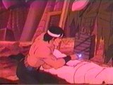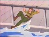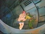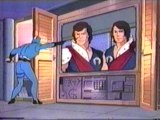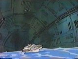 As the ship falls to the end of a tunnel with two turning whirling metal blades, Lady yells at Quick Kick to climb out to the deck, however, at