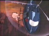 on at full blast. Grunt and Airborne fly their gliders up to the ledge
