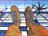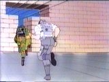 Low-Light shoots away the supports for the letter “O” on top of the hotel and rolls the letter toward the Dreadnoks, forcing them to retreat and jump off the edge of the building and into a pool. However, Ripper is caught in the center of the letter, rolls off the roof and into a tree while Low-Light catches Flint before he falls to the ground.