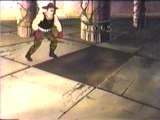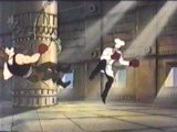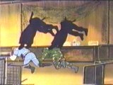 However, Sgt. Slaughter knocks the man off of his back and declares that it is time to fight Slaughter House style. Catching his opponent’s kicking leg, Sgt. Slaughter swings Andre into a stone column then picks him up, twirls him around and tosses him on top of a trapdoor that opens and disposes of the screaming kickboxer.