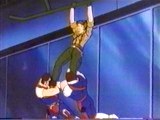 grabs the railing of the Dragonfly, however, the twins leap after her and