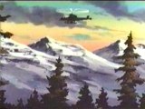 Wild Bill, Ripcord and Recondo fly above the snowy landscape and radio