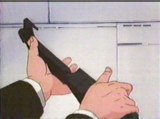 helicopter, tosses into the air a gun twirling on his finger, looks at his watch, tells Ace