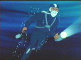 underneath his parachute. Swimming toward the parachute, Torpedo finds