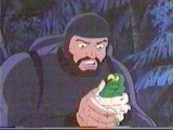Shipwreck grabs the parrot and tells him to be quiet since the entire island
