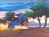 Zartan and the Dreadnoks drive out of a barn on their three-wheeler and