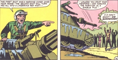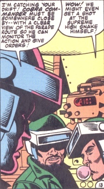 the wrecked reviewing stand. Cobra Commander uses a Girl Scout as a shield
