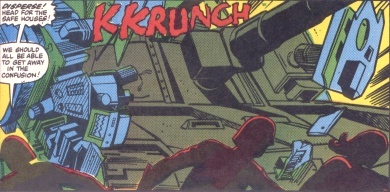 Cobra Commander stabs a Cobra flag into a table and declares that "nothing can stop Cobra." But a Cobra agent behind him asks, "What about G.I.Joe?" Everyone in the room then turns toward a large monitor to watch Hawk, Scarlett, Flash and Breaker work together in order to destroy Cobra's weapons and capture several agents. A MOBAT then smashes through Cobra Commander's viewscreen and Cobra's leader sprints to safety while a VAMP crashes through a wall and pursues him.