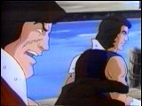 Two helicopters raise the Joes' tactical battle platform into the air and Shipwreck, Recondo, Duke, Barbecue and Snake Eyes each a raise a fist above their head and shout: "Yo Joe!" Zartan rips off a mask and yells to Tomax and Xamot that the Joes have arrived, and the Crimson Guard Commanders order the Hydrofoil attack to commence. However, the battle platform fights back and with the appearance of the Joes' SHARC, Zartan's courage falters, but the twins both order him to "tough it out."