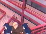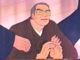 and walk inside, two men in blue robes grab Dr. Morita and carry him away.
