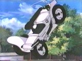 a Silver Mirage motorcycle flies toward them and screeches to a halt. Quick