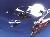 ninja escapes while hanging on the rails of a FANG helicopter.