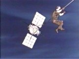 the satellite by leaping onto the FANG helicopter flying the satellite