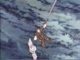 Guard unconscious, who slices the rope carrying the satellite, which crashes
