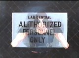 a room, where Dr. Heibbentrope tries to track a pesky microbe under a microscope,