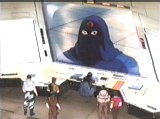 exits and a magnetic panel on the ceiling swings down and removes the Joes