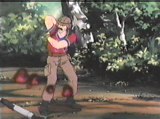 fight all day, Bazooka drops his weapon and begins to scratch his back.