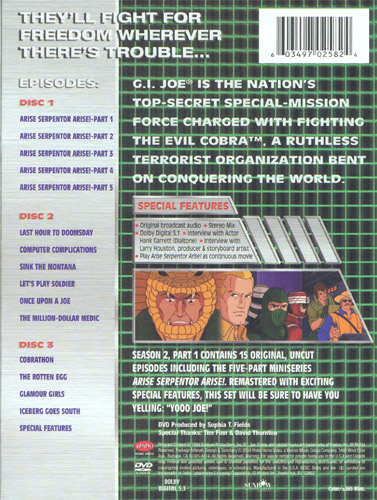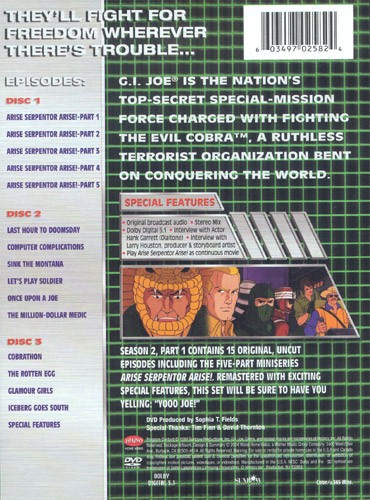 Arise, Serpentor, Arise! (Parts 1-5), Last Hour to Doomsday, Computer Complications, Sink the Montana, Let's Play Soldier, Once Upon a Joe, The Million Dollar Medic, Cobrathon, The Rotten Egg, Glamour Girls, Iceberg Goes South