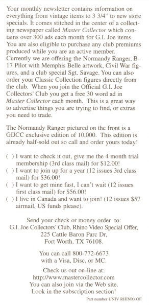 · A flyer (front - 26 kb; back -57 kb) for the G.I.Joe Collector's Club was packaged with the video, which was released as part of the 35th anniversary of the toy line (6 kb)