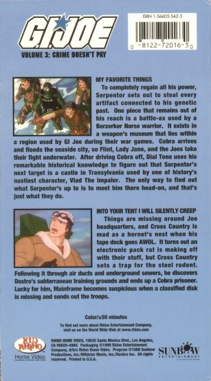 · Advertisement for the Rhino's web site as well as the videos of The Transformers, G.I.Joe and Jem